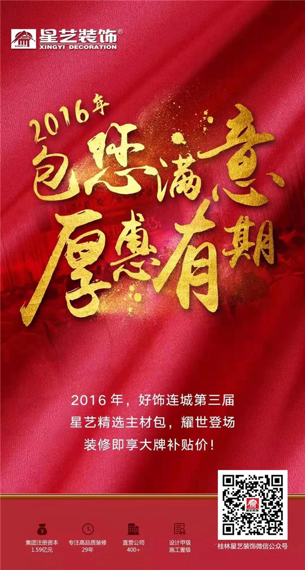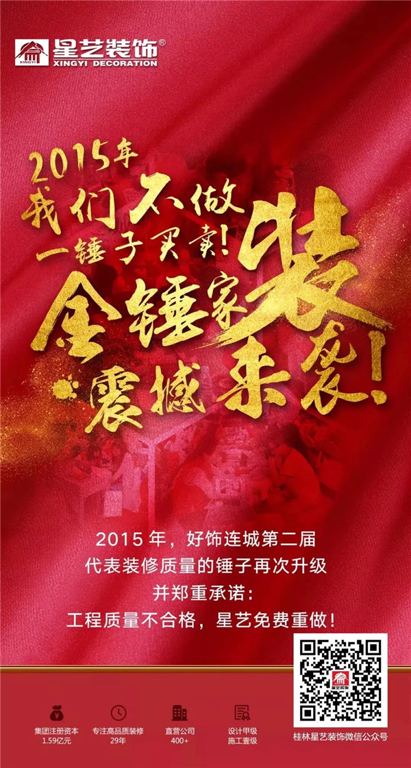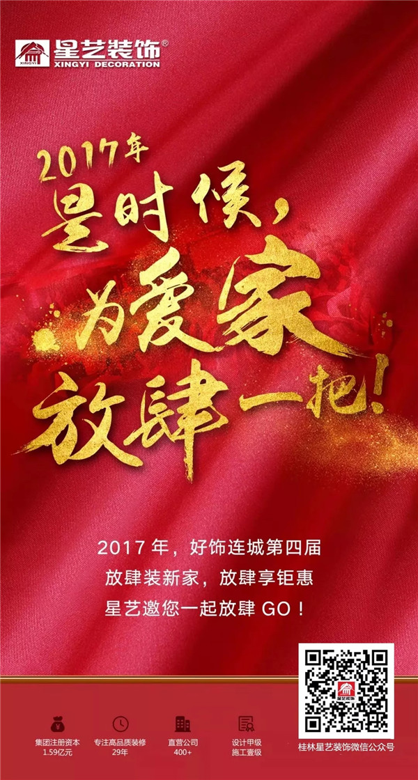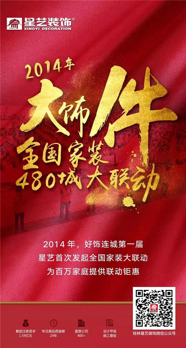 廣東星藝裝飾集團(tuán)一年一度的好飾連城活動(dòng)即將上演,各種大牌,優(yōu)惠不斷,敬請(qǐng)關(guān)注桂林星藝裝修公司,活動(dòng)更精彩。