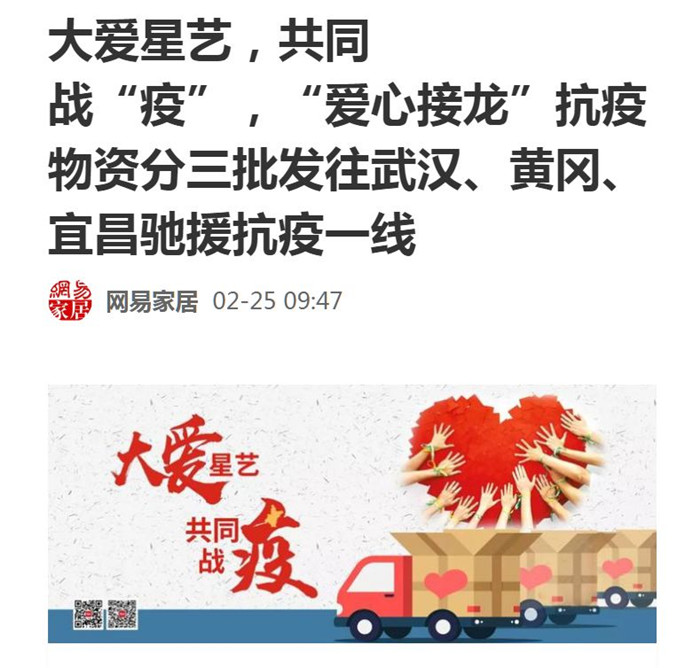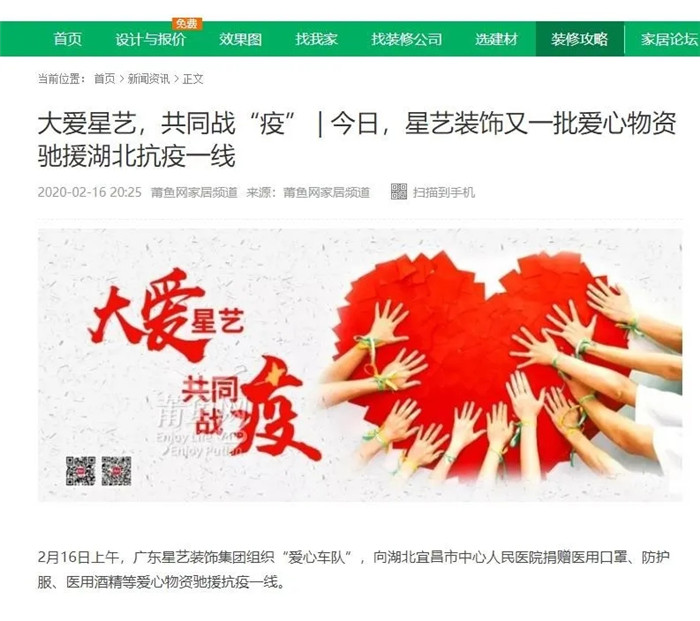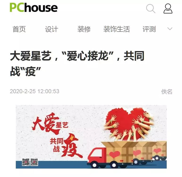 星藝大愛,星藝行動,吸引人民日報客戶端廣東頻道、騰訊家居、網(wǎng)易家居、陶衛(wèi)網(wǎng)、太平洋家居等多家媒體報道和轉(zhuǎn)載。