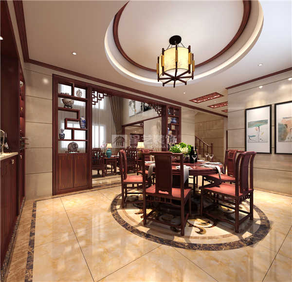 設(shè)計理念是,雅致的中式元素把整個設(shè)計烘托到了極致??蛷d和門廳中間巧妙的利用通透的隔斷,讓門廳和客廳出現(xiàn)了似斷非斷的視覺效果,高低不同的錯層設(shè)計,讓空間充滿了節(jié)奏與韻律感。