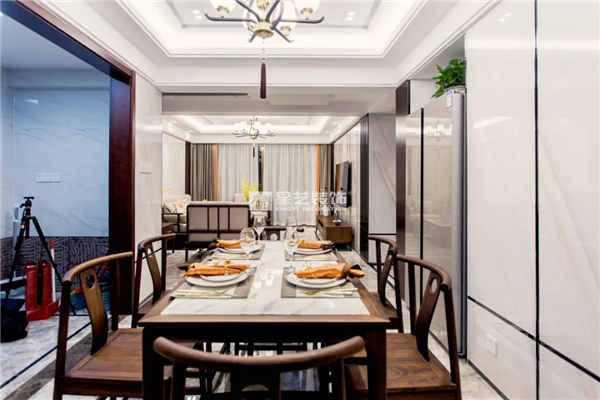 本案以新中式設(shè)計風(fēng)格為主基調(diào),將傳統(tǒng)中式元素與現(xiàn)代簡約兩者糅合。簡潔的線條勾勒出富有層次的空間,搭配醇厚溫和的中式家具,表現(xiàn)出極具韻味的特色,清幽又雅靜。