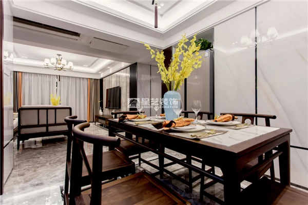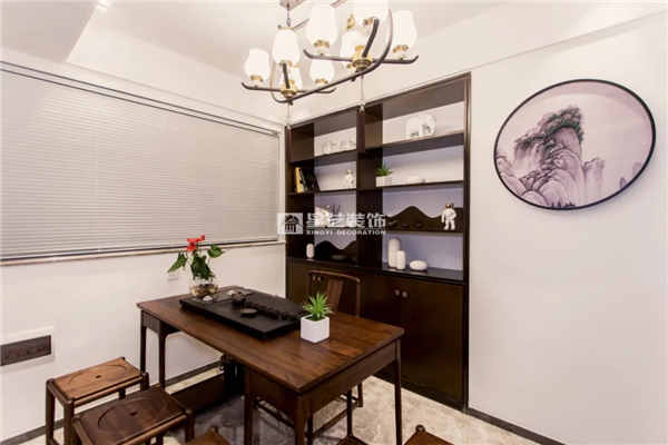 本案設(shè)計不僅蘊含中式元素的美感,還與現(xiàn)代家居的實用性完美結(jié)合,完美地把客戶的愛好與生活需求嵌入清雋古意的氛圍之中。