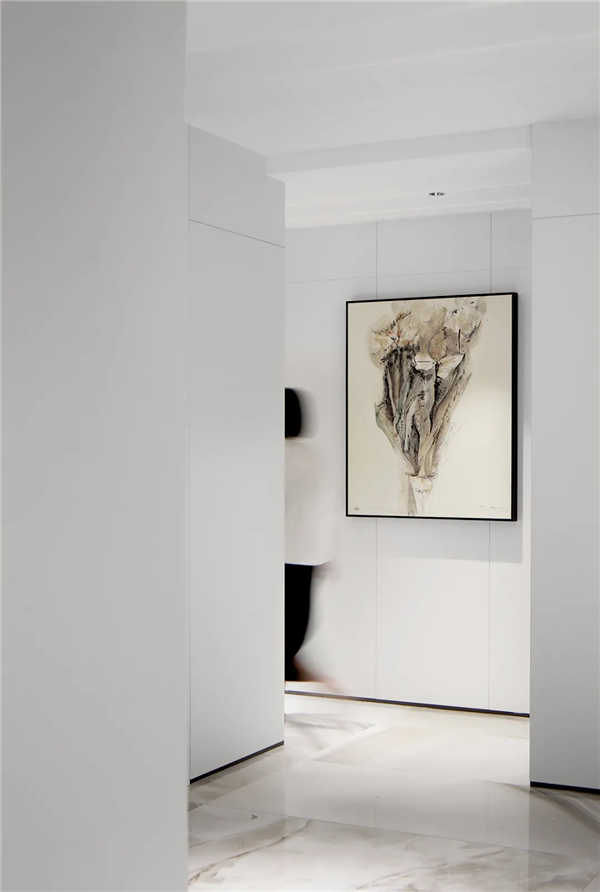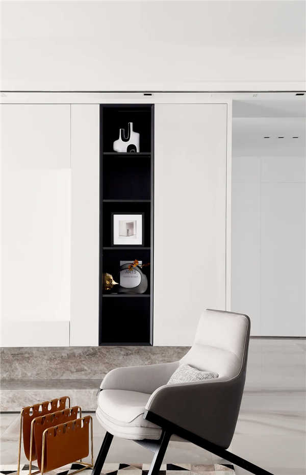 整體風(fēng)格力求極簡,帶出材質(zhì)最原始的面貌,以白色基調(diào)為設(shè)計(jì)主題,凸顯材質(zhì)最自然的美感,營造出純凈自然的空間氛圍。另外,設(shè)計(jì)師將深灰色的木板加入設(shè)計(jì)之中,增加空間的立體層次。公共區(qū)域軸線的設(shè)計(jì)除了延伸視覺還為小孩打造一個(gè)活動(dòng)小天地。