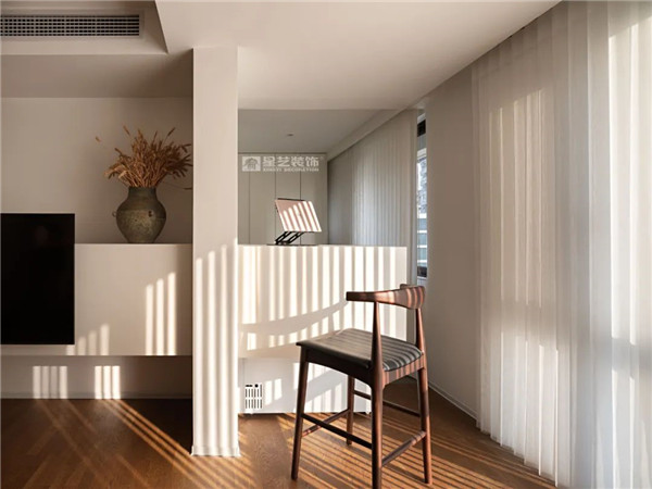 連廊的洄游動(dòng)線,讓臥室和手作室,客廳緊密相連,空間更加靈活舒適。