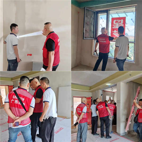 落實(shí)星藝施工標(biāo)準(zhǔn),展現(xiàn)星藝拳拳匠心。為業(yè)主愛家把好質(zhì)量關(guān),美好生活保駕護(hù)航,廣西大區(qū)工程巡視組在廣西大區(qū)總部吳傳偉主任帶領(lǐng)下,7月5-7日督導(dǎo)聯(lián)合星藝裝飾桂林公司、臨桂公司的工程部、質(zhì)檢部進(jìn)行了為期三天的工程質(zhì)量大巡檢。