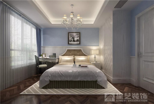 臥房實(shí)木造型與墻紙及體現(xiàn)空間層次又感覺(jué)特別溫馨。