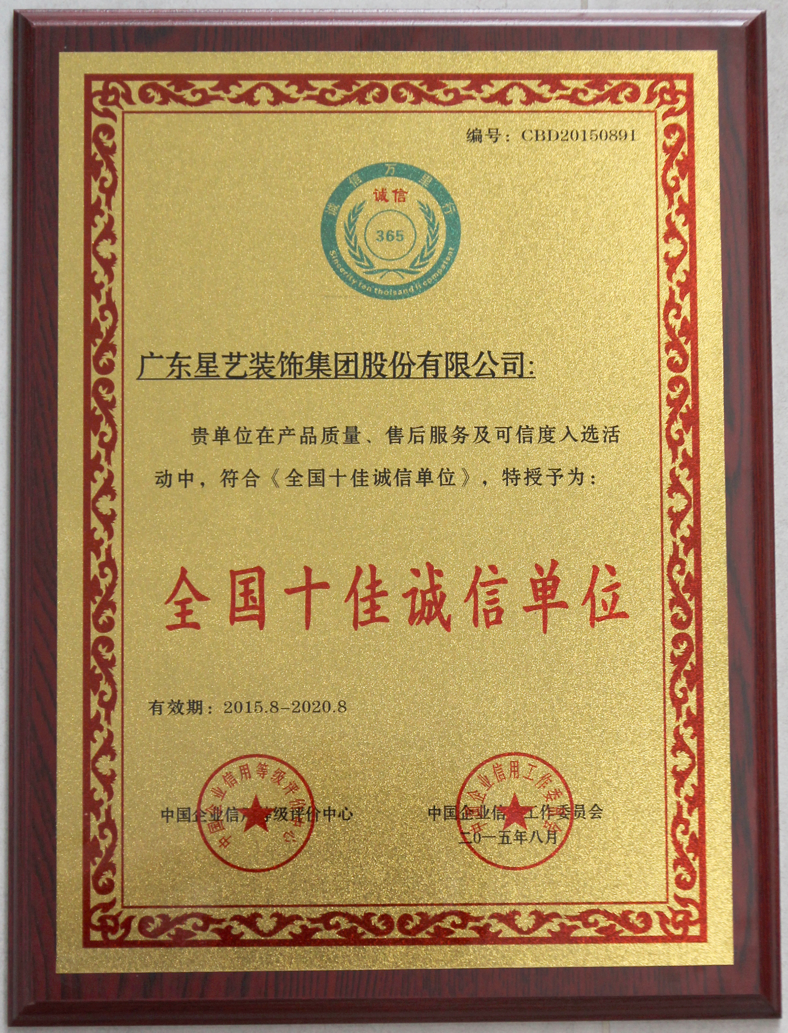 2014年全國十佳誠信單位