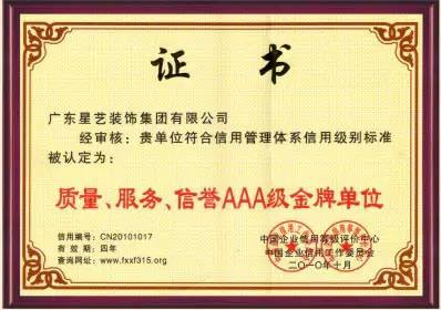 2014年質量、服務、信譽AAA級金牌單位